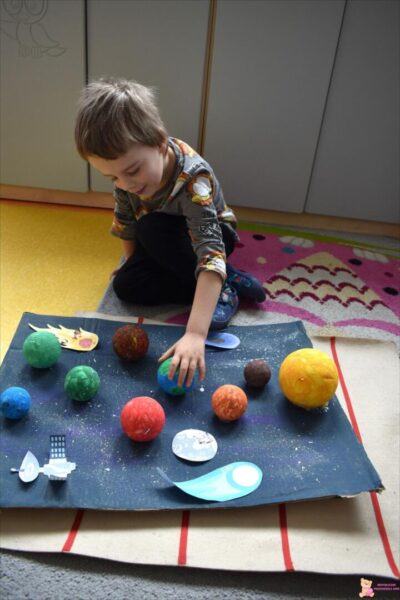 W zeszłym tygodniu grupa „Dinusie” omawiała blok tematyczny pt. „W kosmosie”. Uczyliśmy się jak nazw planet . Za pomocą wiatraka matematycznego dopasowywaliśmy planety do cyfr jakie są we wrzechświecie. Wykonaliśmy karty pracy polegające na kolorowaniu planet, przyklejaniu napisów do odpowiednich miejsc oraz próbowaliśmy kodować nazwy planet za pomocą kosmicznego alfabetu. Ćwiczyliśmy dzielnie swoją kondycję do lotu na księżyc