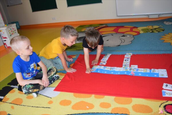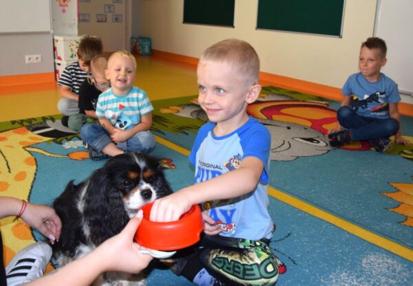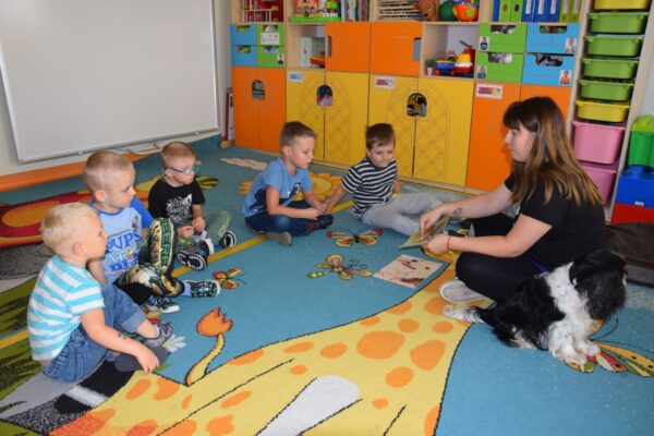 W minionym tygodniu grupa Jeżyków omawiała plan dnia w przedszkolu. Przypomnieliśmy sobie poszczególne aktywności. Chłopcy uczestniczyli także w zabawach orientacyjno -porządkowych oraz rozwijali motorykę dużą. Podczas zabawy sekwencyjnej klockami, rozwijali koncentrację uwagi na zadaniu oraz pamięć słuchową. Uczestniczyli także w zajęciach dogoterapii, podczas których pilnie pracowali pod okiem psiego terapeuty. 🐶