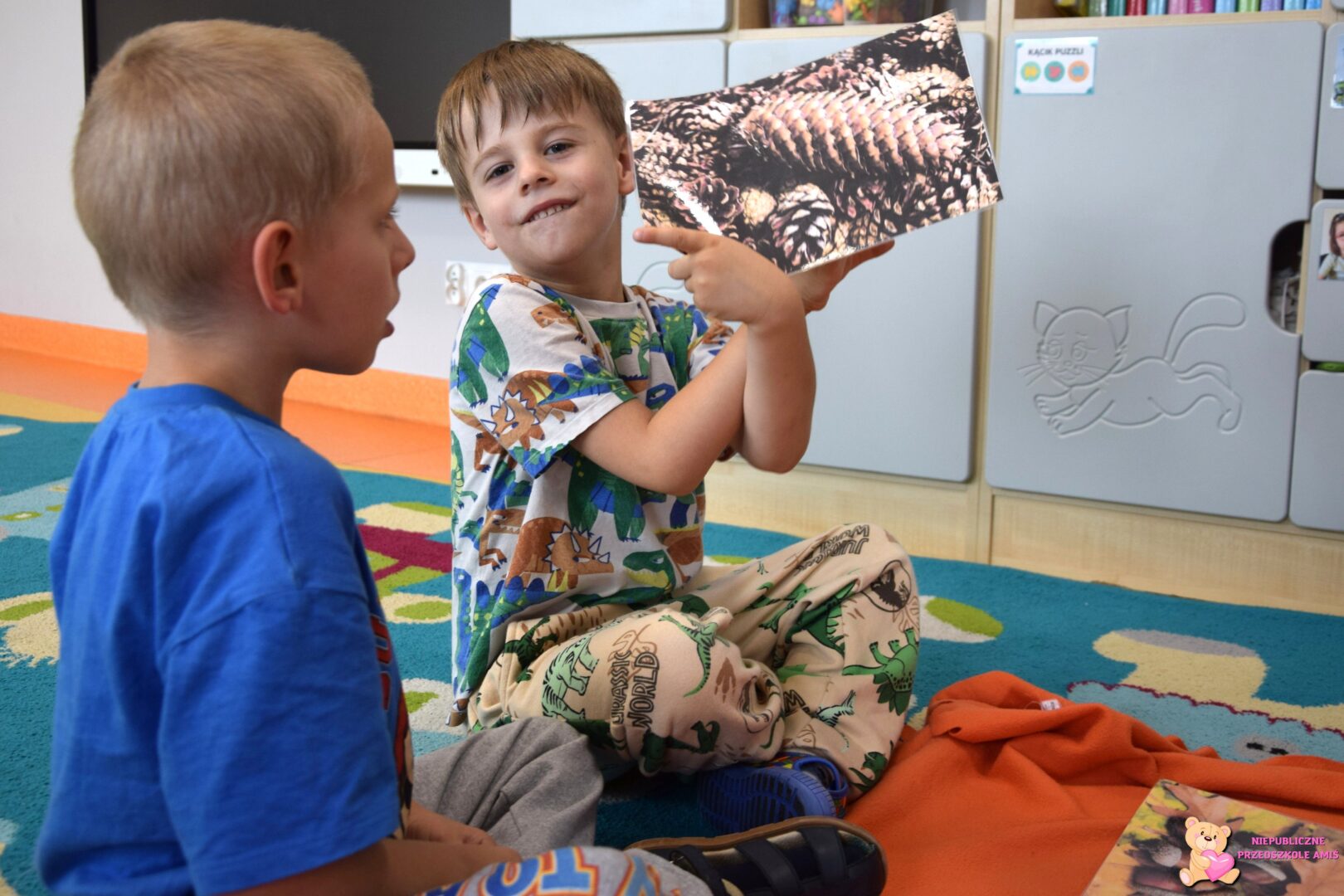 . Przedszkolaki dopasowywały zebrane podczas spaceru dary jesieni do odpowiednich ilustracji