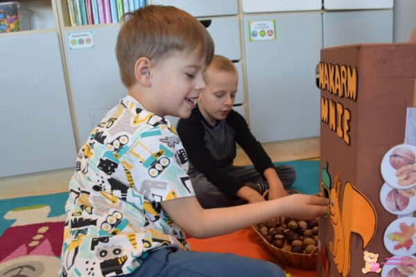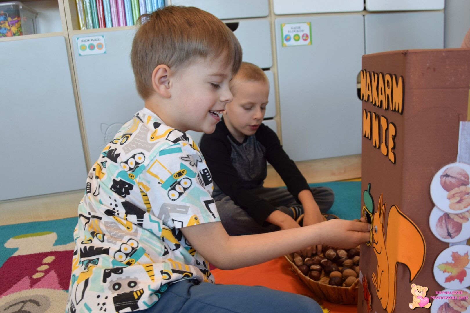 . Nie zabrakło także elementów zabawy z matematyką – dzieci karmiły wiewiórkę