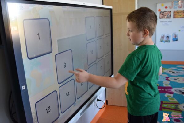 . Na zakończenie tygodnia Tygryski powtórzyły zdobytą wiedzę, wykonując zadania na tablicy multimedialnej