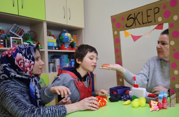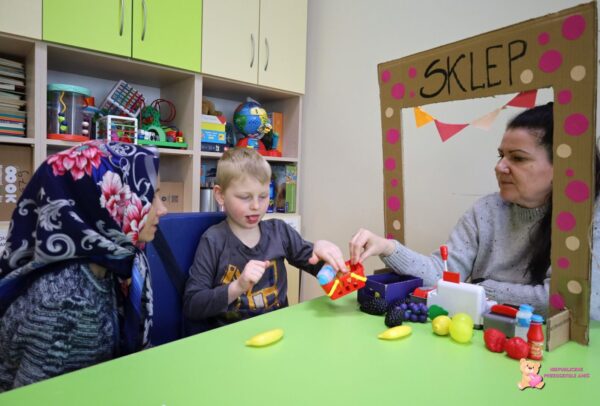 brały udział w zabawie „Jadę z babcia na zakupy”, która przyniosła chłopcom dużo radości.
