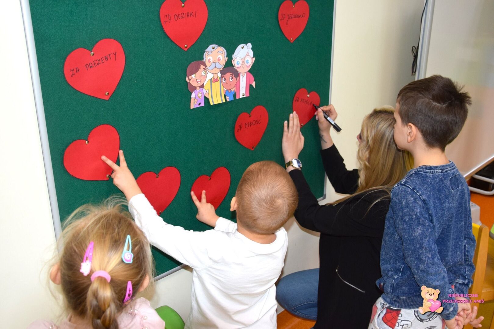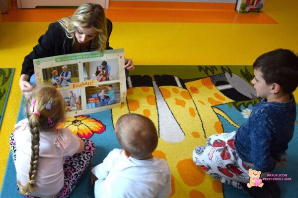 , oglądały przyniesione zdjęcia rodzinne oraz opowiadały o wspólnie spędzanym czasie. Przedszkolaki dzieliły się swoimi doświadczeniami, mówiły za co są wdzięczne babciom i dziadkom oraz jakie uczucia im towarzyszą w kontaktach z najbliższymi. Zajęcia te rozwijały umiejętność wypowiadania się, uważnego słuchania oraz wzmacniały więzi rodzinne. Podczas zajęć plastycznych dzieci wykonywały laurki dla babci i dziadka, wkładając w nie dużo staranności i zaangażowania. Prace rozwijały sprawność manualną, kreatywność oraz pozwalały dzieciom wyrazić swoje emocje.