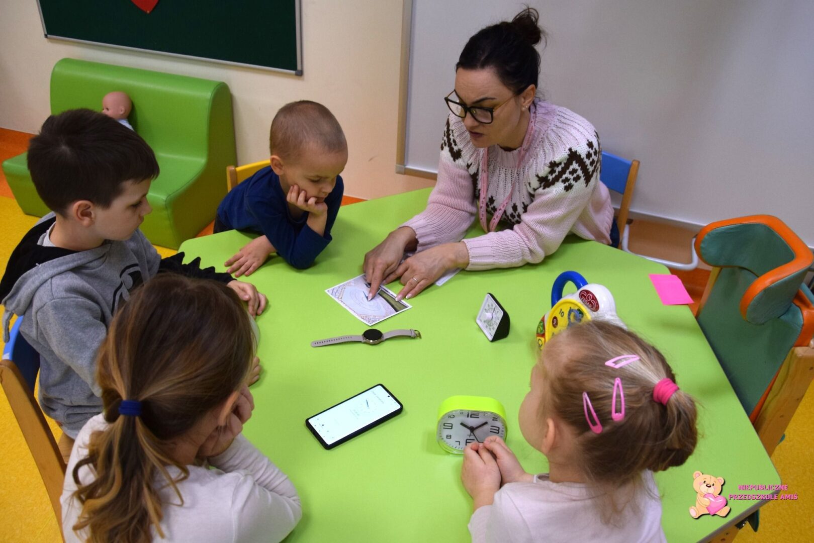 oraz poznawały ich zastosowanie. Przedszkolaki dowiedziały się, do czego służy zegar i w jaki sposób pomaga nam w codziennym życiu. Na zakończenie dzieci wykonały własne zegary w pracy plastycznej, utrwalając zdobytą wiedzę w praktyczny i twórczy sposób. Zajęcia miały formę rozmów, zabaw dydaktycznych oraz działań plastycznych, dostosowanych do wieku i możliwości dzieci.