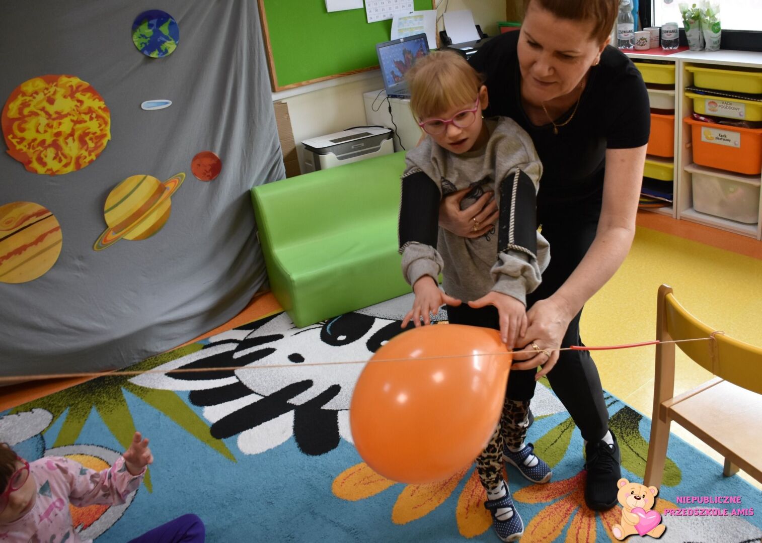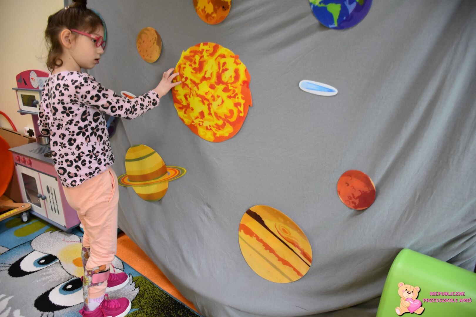 W minionym tygodniu przedszkolaki z grupy Perełek brały udział w zajęciach związanych z Kosmosem i Układem Słonecznym. Rozmawialiśmy o porze dnia i nocy, poznawaliśmy planety jakie krążą wokół Słońca. Z pomocą cioć stworzyliśmy kolorową lunetę, a także braliśmy udział w zabawie badawczej „Lot balonem”.