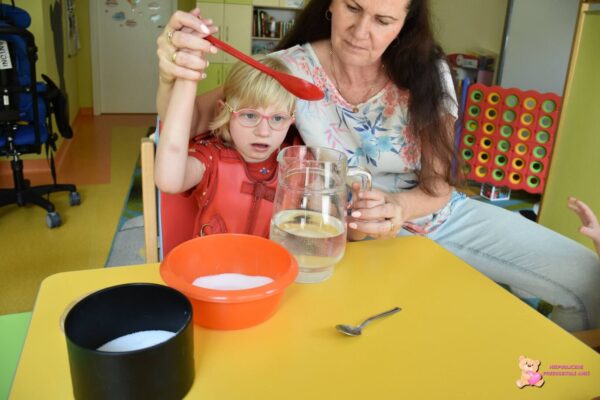 W tym tygodniu przedszkolaki z grupy Perełek brały udział w zajęciach dydaktycznych nawiązujących do rozpoczętych wakacji. Dzieci z pomocą cioć wykonały pracę plastyczną zdobiąc kapelusze, wysłuchały również opowiadania pt. „Na basenie” -M. Krzemińskiej. Ćwicząc motorykę małą wykonały zadania na tablicy multimedialnej. Przedszkolaki uczestniczyły również w zabawach ruchowych, oraz wykonały eksperyment z krystalizowaniem się soli. Nie zabrakło także zabaw w Sali Doświadczania Świata z wykorzystaniem magicznego dywanu.