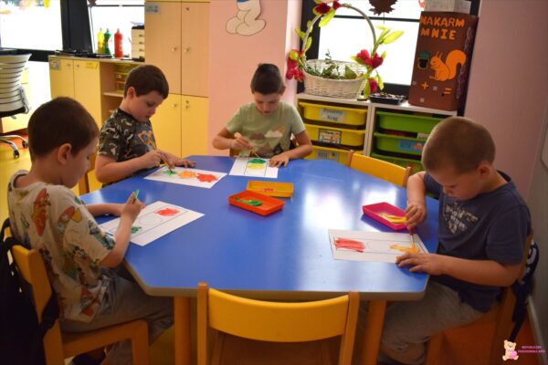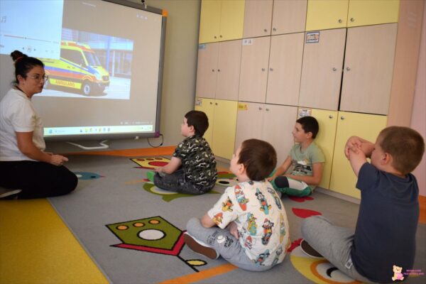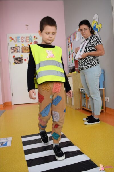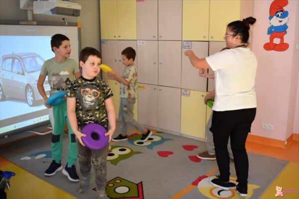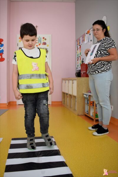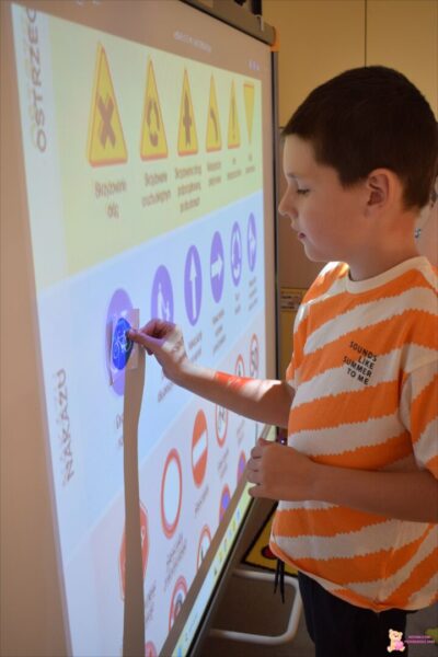 Bezpieczeństwo na drodze to bardzo ważny temat, o którym rozmawialiśmy w naszej grupie w tym tygodniu! Dzieci uczyły się zasad bezpiecznego przechodzenia przez ulicę, rozpoznawania znaków drogowych, numerów alarmowych oraz tego, jak ważne jest noszenie kamizelek odblaskowych. Podczas zajęć chłopcy mieli możliwość ćwiczenia prawidłowego przechodzenia przez pasy i zatrzymywania się na czerwonym świetle. Przedszkolaki przypomnieli sobie również dźwięki pojazdów, które mogą pojawić się na drodze, ale także poza nią. Wykonali prace plastyczną „Sygnalizacja świetlna”. Na podsumowanie wiadomości wykonywali ćwiczenia na tablicy multimedialnej.