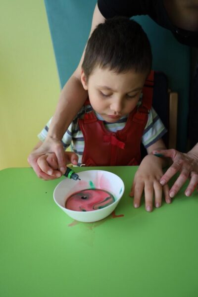 W minionym tygodniu przedszkolaki omawiały tematy związane z rodziną. Dzieci na zajęcia przyniosły zdjęcia swoich najbliższych podczas których ciocia wyjaśniła dzieciom co to jest rodzina, kto wchodzi w skład rodziny. Przedszkolaki rozwijały swoją wyobraźnie tworząc kolorowe obrazy na mleku. Ćwicząc motorykę małą