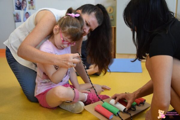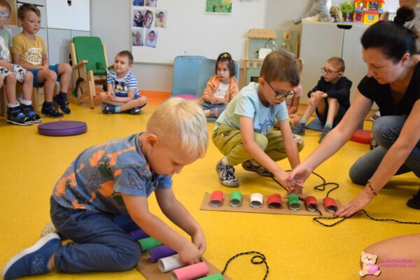 , wymagały skupienia i ćwiczyły koordynacje wzrokowo – ruchową. Przewlekaliśmy sznurki, wyławialiśmy piłki