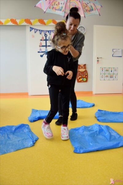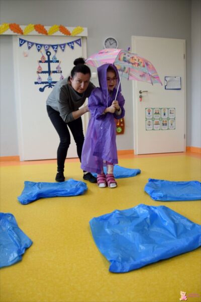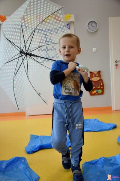 W poprzednim tygodniu grupa „Żabek”🐸 dowiedziała się wiele na temat deszczu, ponieważ jesienna pogoda obfituje w różne jego rodzaje. Zrozumieliśmy, jak ważne jest ubieranie kaloszy, płaszcza przeciwdeszczowego, ciepłego sweterka i używanie parasola. Podczas zabawy ruchowej ubrani w odpowiednie ubrania omijaliśmy kałuże. Wykonaliśmy pracę plastyczną „Deszcz”, nasze „magiczne” obrazki wrzucaliśmy do wody.😁
