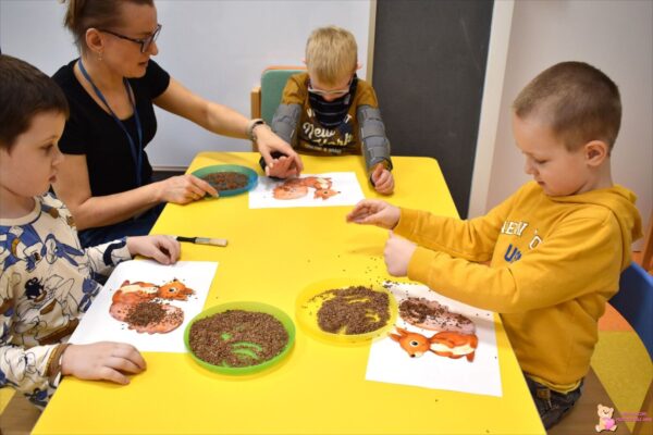 Przedszkolaki z grupy „Dinusiów” 🦕🦕🦕w zeszłym tygodniu omawiali temat „Przygotowania do zimy”. W trakcie zajęć dowiedzieliśmy się, które zwierzęta zasypiają w sen zimowy. Dopasowaliśmy do nich domki, gdzie przetrwają zimę. Uczyliśmy się stosunków przestrzennych na karmniku jak również pesetami wyjmowaliśmy orzechy z karmnika ćwicząc swój chwyt. Ciocia pokazała nam różne ziarenka, którymi możemy dokarmiać ptaszki zimą. Mieliśmy zajęcia techniczne polegające na zbiciu karmnika, który zabrał do domu. Podczas zajęć klik umiem to w mig wskazywaliśmy co dane zwierzę robi przed nadejściem zimy. Na koniec wykonaliśmy pracę plastyczną polegającą na wyklejeniu ogona wiewiórki siemieniem lnianym.