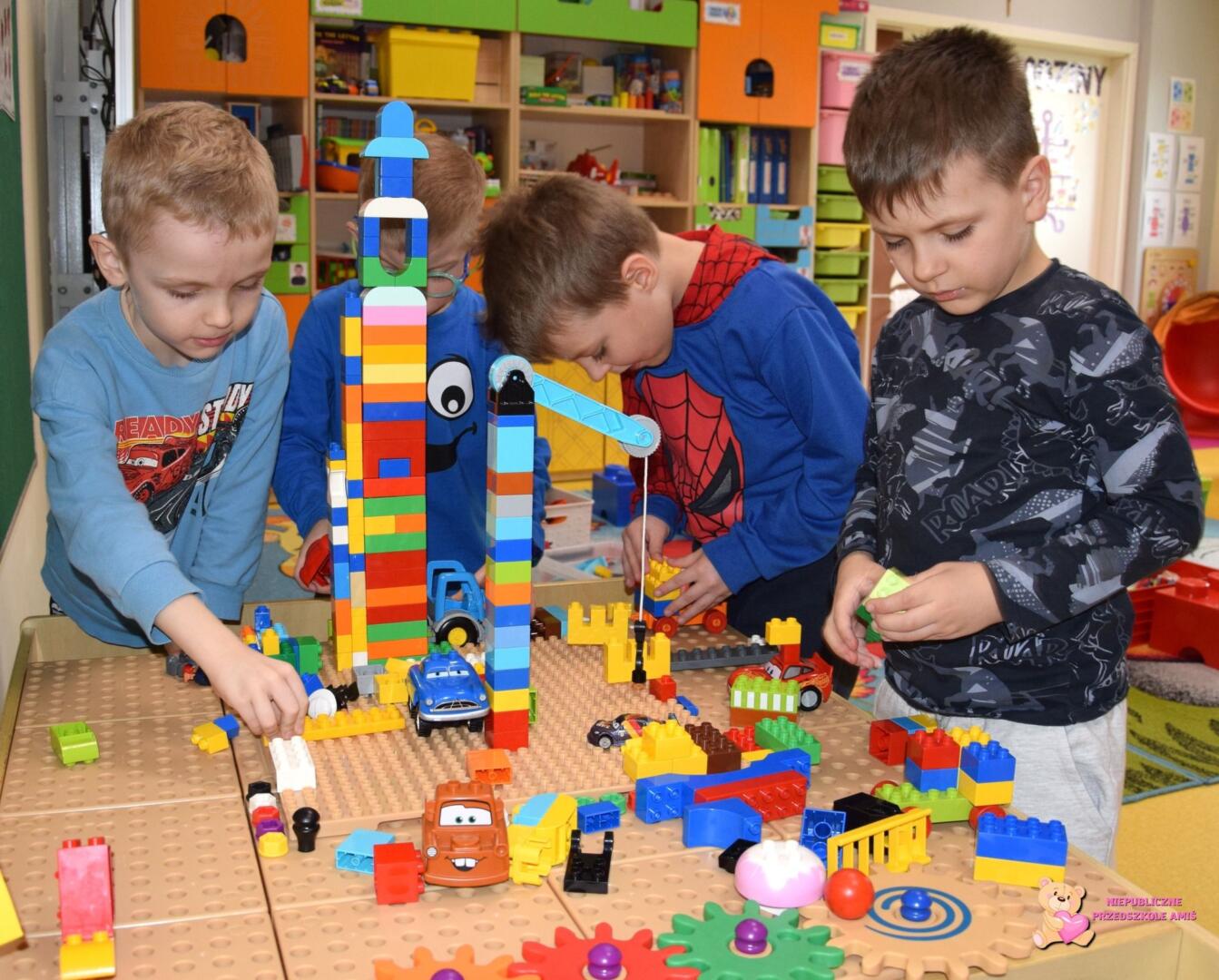 28 stycznia obchodzony jest Międzynarodowy Dzień LEGO. Nasze Amisiaki kochają zabawy klockami. Wczoraj bawiliśmy się nimi wykorzystując je w różnoraki sposób. Najwięcej frajdy sprawiło dzieciom malowanie farbami figurek lego z gipsu, które dzieci wzięły później do domu. Oczywiście było wspólne budowanie z klocków wież, domów i wszystkiego, co sobie dzieci wymarzyły. Amisiaki przekonały się, że klocki to też świetne stemple do malowania. Dzieci układały wzory z klocków oraz liczyły na klockach. To był czas dobrej wspólnej zabawy, podczas której grupy integrowały się ze sobą.