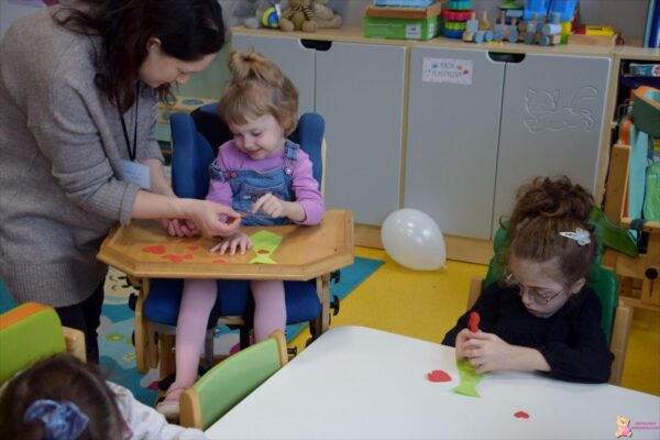 . Dowiedzieliśmy się, dlaczego do starszych należy odnosić się z szacunkiem i co to słowo oznacza. Wykonywaliśmy też rymowany masażyk do wierszyka o rodzinie myszek, ćwicząc tym samym nasze paluszki. W zabawie logopedycznej wybraliśmy się na wycieczkę z dziadkami. Dzieci losowały pojazd którym pojadą do dziadka a następnie staraliśmy się naśladować dźwięki jakie on wydaje. W czasie zabaw matematycznych układaliśmy serduszka