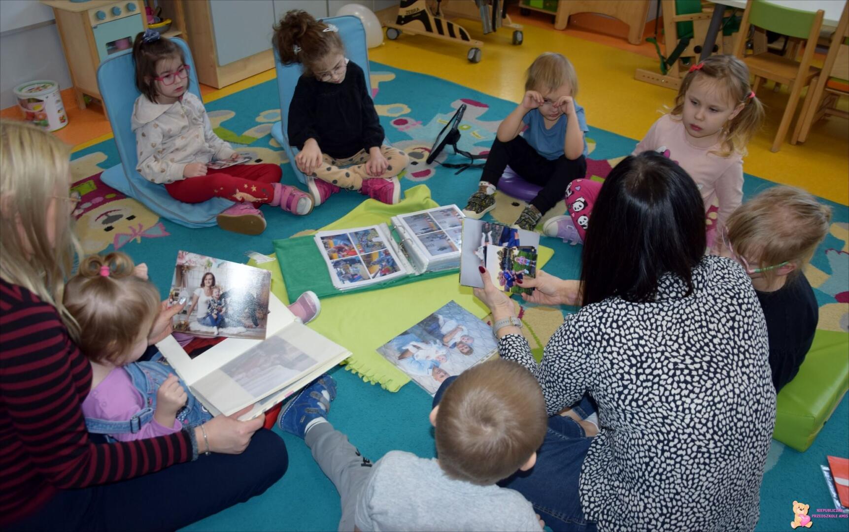 W ubiegły tygodniu tematem wiodącym była nasza rodzina. Z tej okazji dzieci przyniosły do przedszkola rodzinne albumy, zdjęcia. Była to dla nas okazja, aby przedstawić swoich bliskich, opowiedzieć kim są. Dzieci wskazywały też na mówkach osoby z swojej rodziny