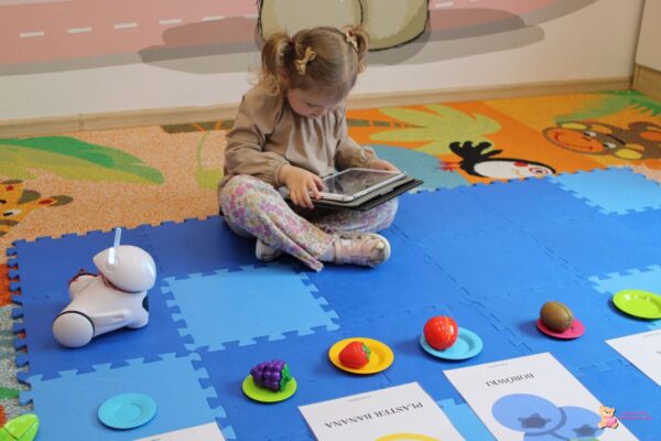 . Uczestniczyliśmy również w zajęciach robotyki, gdzie utrwalaliśmy nazwy owoców oraz dopasowywaliśmy ich modele do planszy