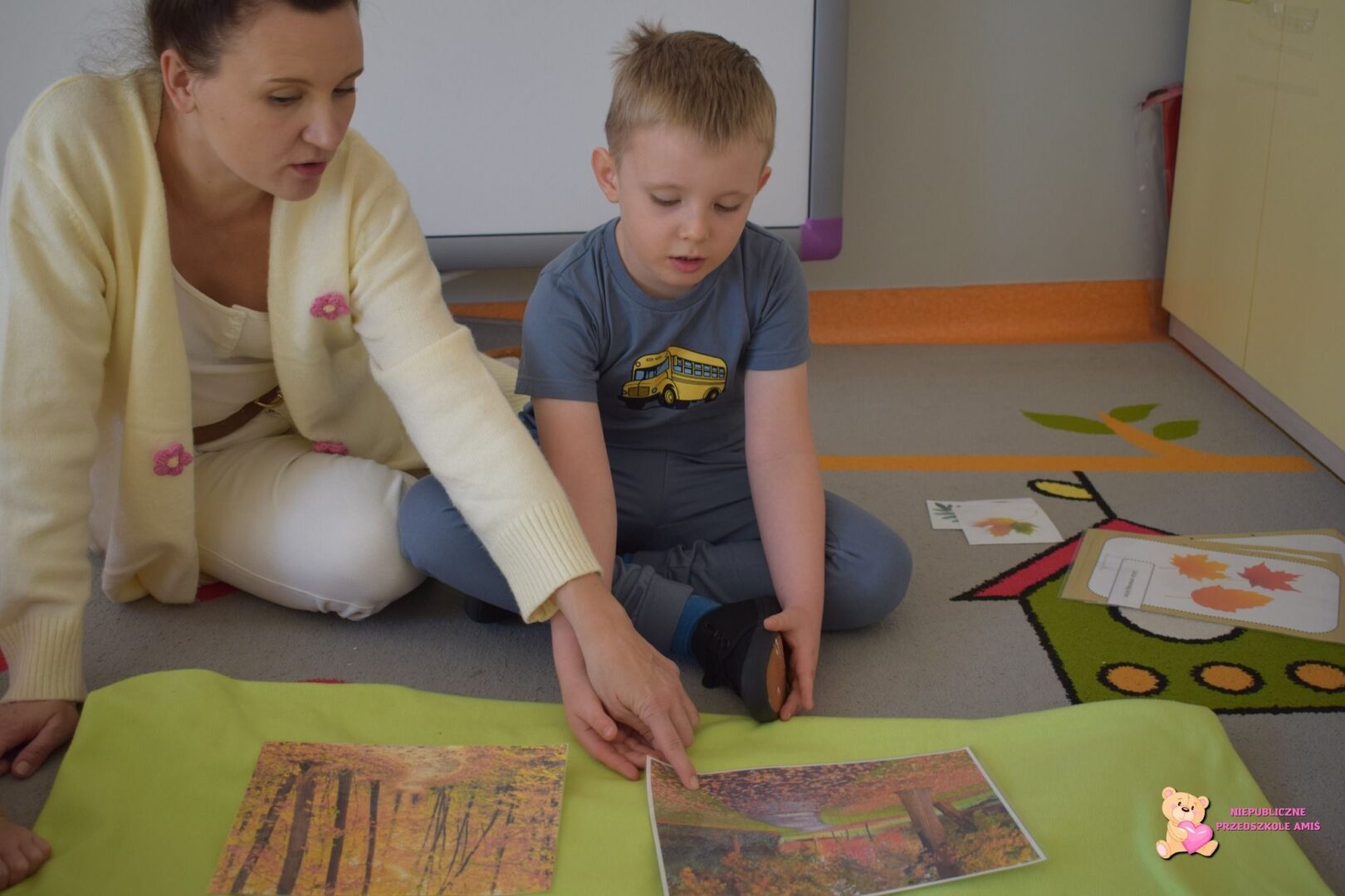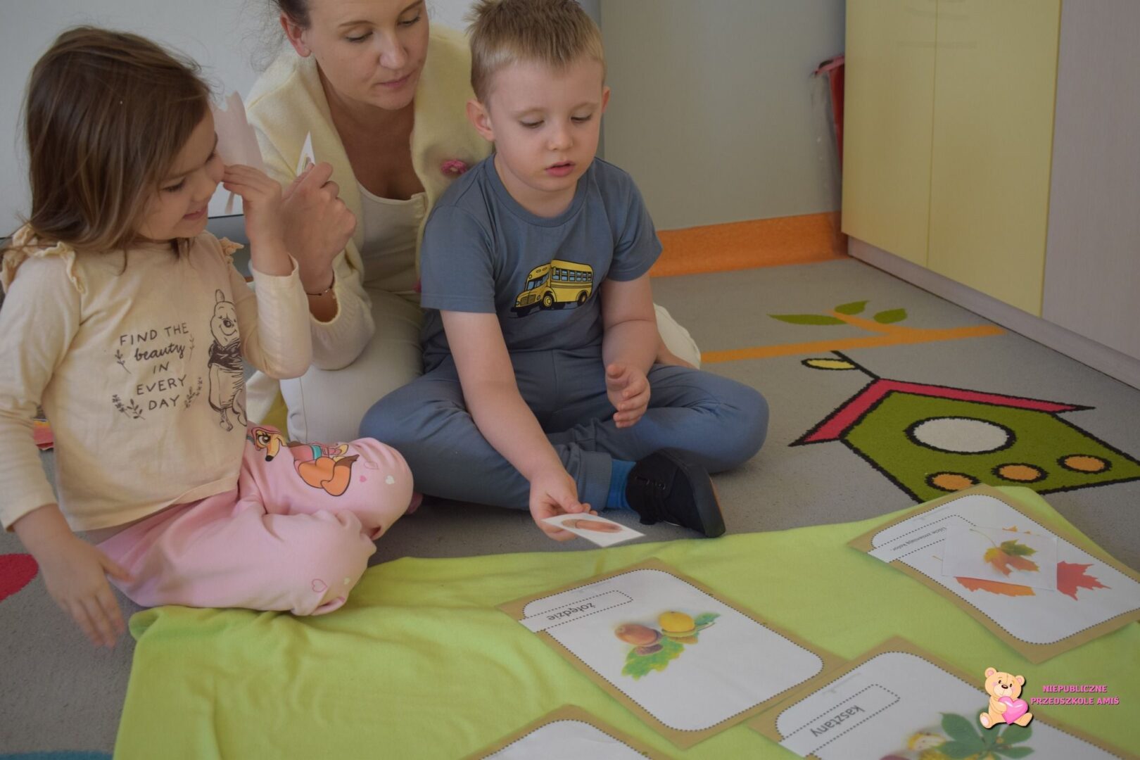 W tym tygodniu przedszkolaki z grupy Promyczków poznawały dary jesieni. Dzieci z pomocą nauczyciela dopasowywały obrazki do odpowiednich plansz. Podczas gimnastyki buzi i języka dzieci dmuchały przez słomkę w celu wprawienia w ruch jesiennych liści.