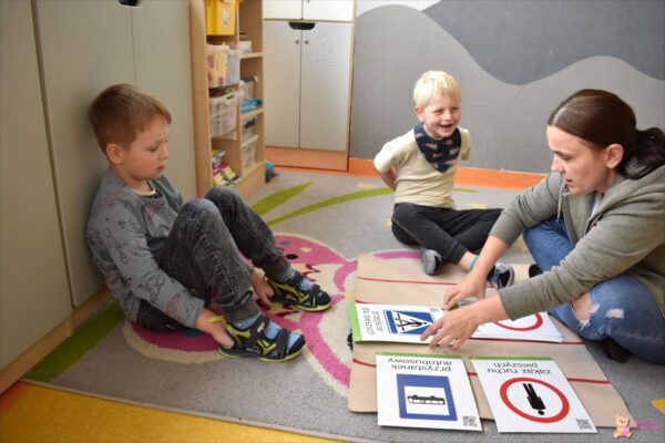 Grupa Dinusiów w poprzednim tygodniu omawiała blok tematyczny pt. „Bezpieczni na drodze”. W trakcie zajęć dzieci uczyli się na temat bezpiecznego przechodzenia przez jezdnię, poznawali wybrane znaki drogowe![]()