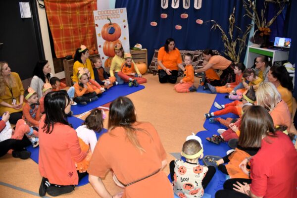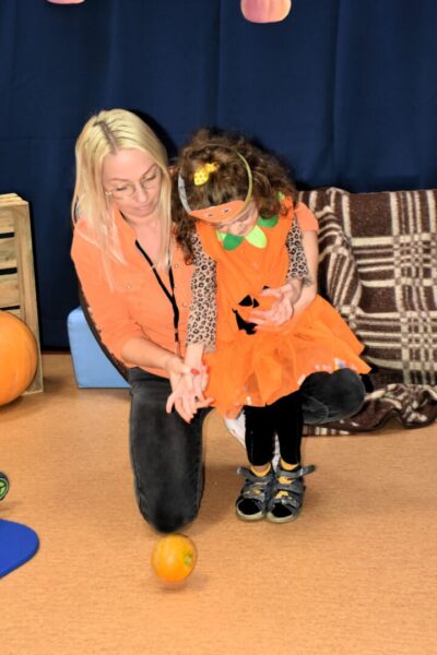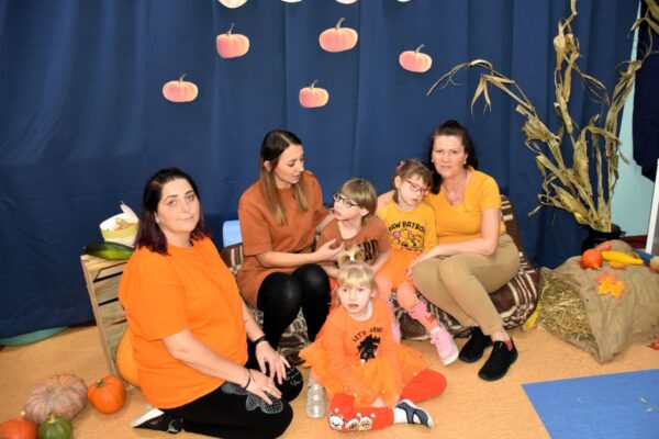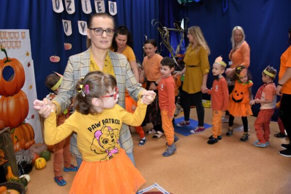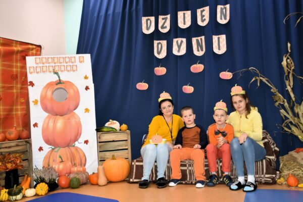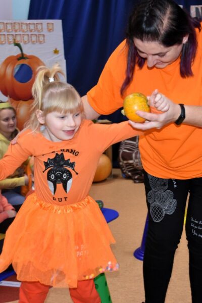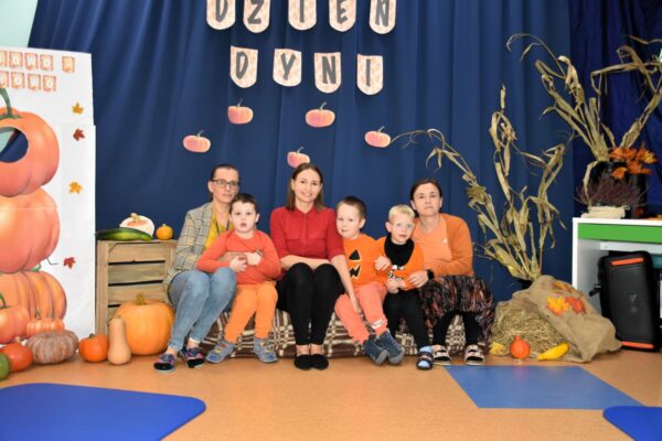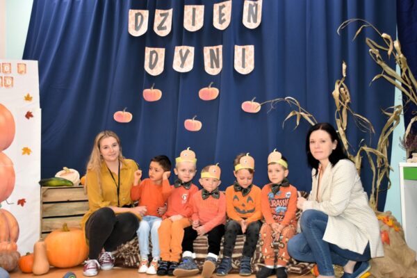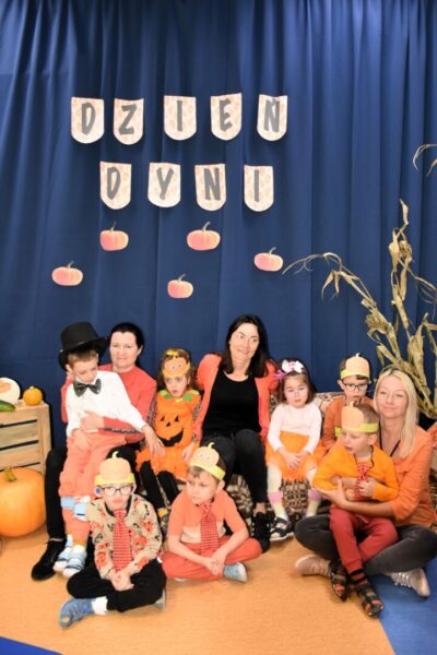 To nie był koniec atrakcji!!! Każdy przedszkolak przyszedł ubrany na pomarańczowo do przedszkola, aby świętować „Dzień Dyni”. Wszystkie dzieci uczestniczyły w zajęciach podczas, których poznały bardzo zdrowe i urodziwe warzywo jakim jest dynia. Każdy z nas spróbował swoich sił w zabawach ruchowych z udziałem dyni: slalom dyniowy, podawanie sobie dyni w różny sposób w rytm muzyki oraz turlanie dyni do celu. Amisiaki wysłuchały ciekawostek o jesiennym warzywie. Panie przygotowały, także wspaniałą fotobudkę, w której każdy przedszkolak mógł sobie zrobić zdjęcie oraz otrzymał dyplom z okazji „Dnia dyni”. Dzieci z zapałem zabrały się również do prac plastycznych, wyklejając dynie plasteliną ćwicząc przy tym swoje paluszki.