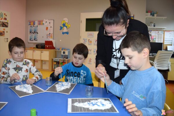 . Dzieci wykonały ciekawe prace plastyczne – tworzyły kroplę wody