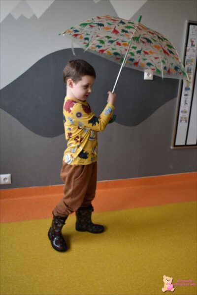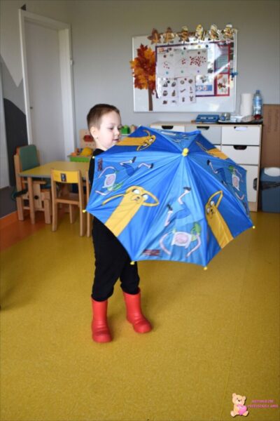Przedszkolaki z grupy Dinusie w zeszłym tygodniu omawiali deszczową pogodę