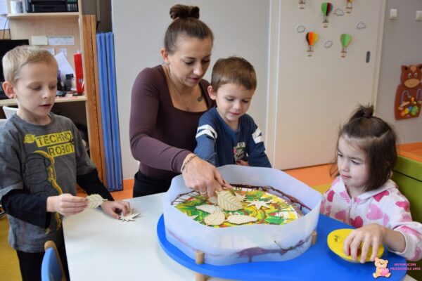 . Następnie przedszkolaki poznały cyferkę 3 dzielnie przeliczając wszystko wokół — grzyby