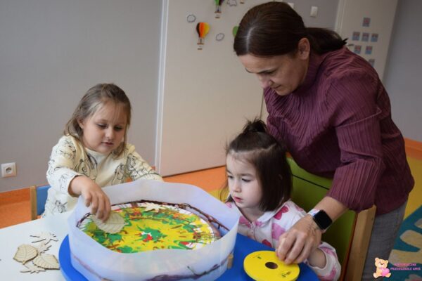 , wybraliśmy się na radosne „grzybobranie”. Wielką frajdę sprawiła dzieciom zabawa z „karuzelą kolorów”