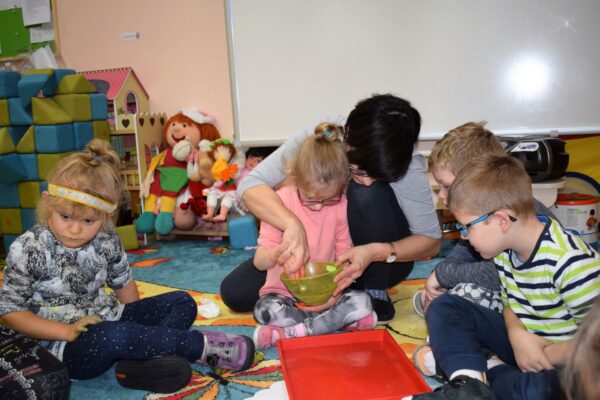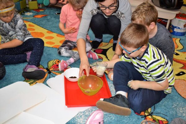 W grupie Jeżyków niezwykłe eksperymenty z kawą. Dzieci obserwowały zmiany zachodzące w kawie po dolaniu mleka, zamieszaniu. W zabawie wykorzystane były wszystkie zmysły. Dzieci mogły powąchać, dotknąć, a nawet posmakować kawy. Doświadczenia bardzo zaciekawiły nasze dzieci, każde z nich chciało coś wykonać.