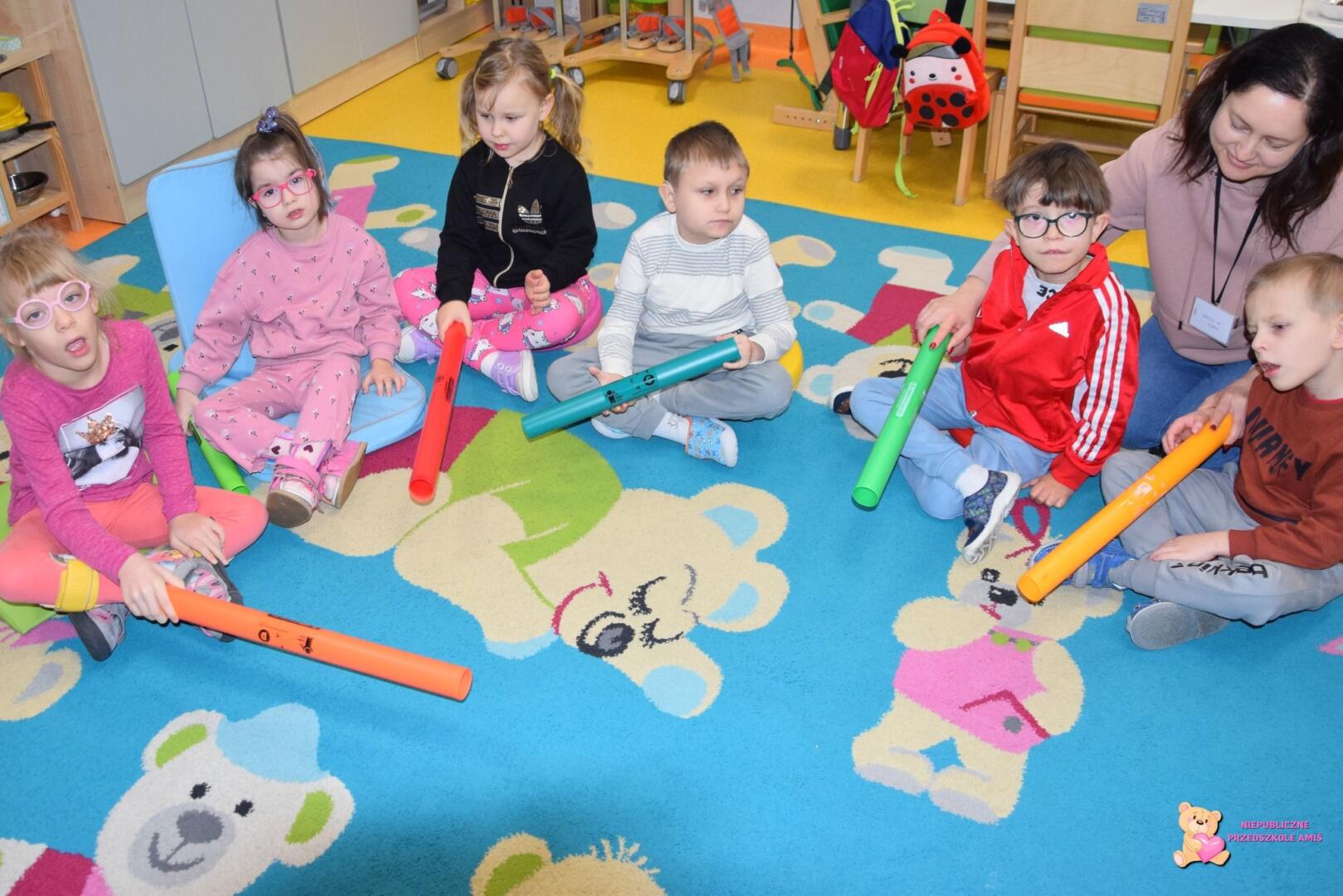 Na muzykoterapii dzieci poznały nowy instrument perkusję elektroniczną. Podejmowały próby grania na niej, słuchały różnych dźwięków elektronicznych. Następnie przeszliśmy do […]