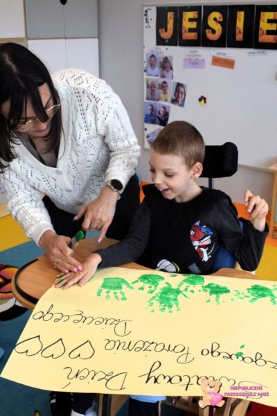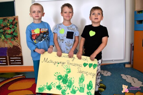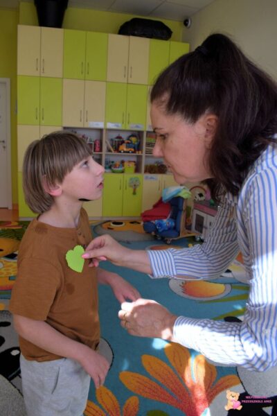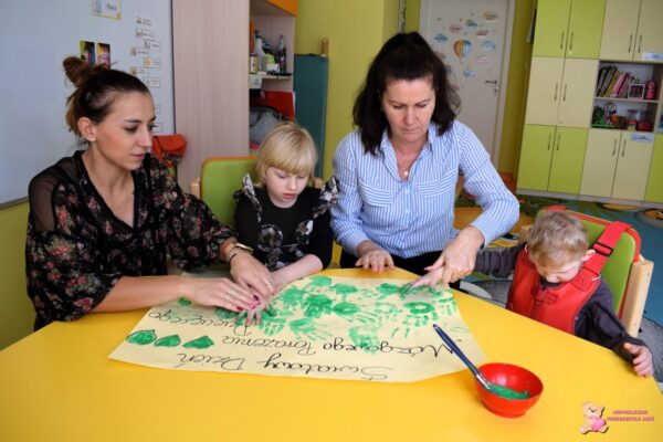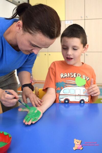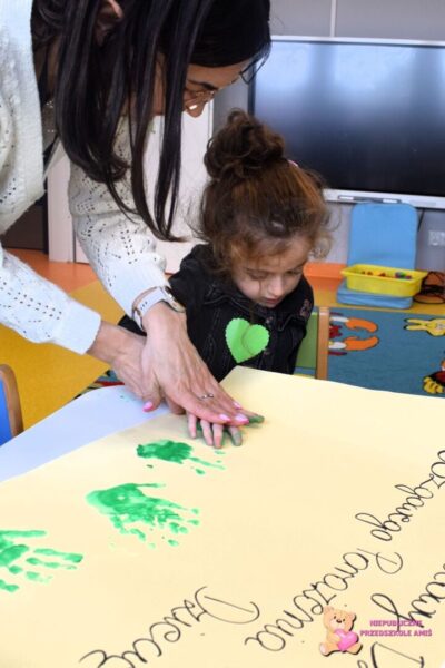 Amisiaki wraz z ciociami upamiętniły ten dzień odciskając swoją rączkę na wspólnym plakacie oraz przyklejały zielone serduszka
